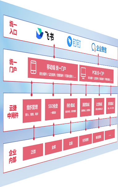 对协作平台提供支持服务,,支持企业应用与协作平台对接,,包含组织同步、、、消息集成、、、、待办集成等。。。支持目前主流的协作平台:钉钉、、企微和飞书。。。